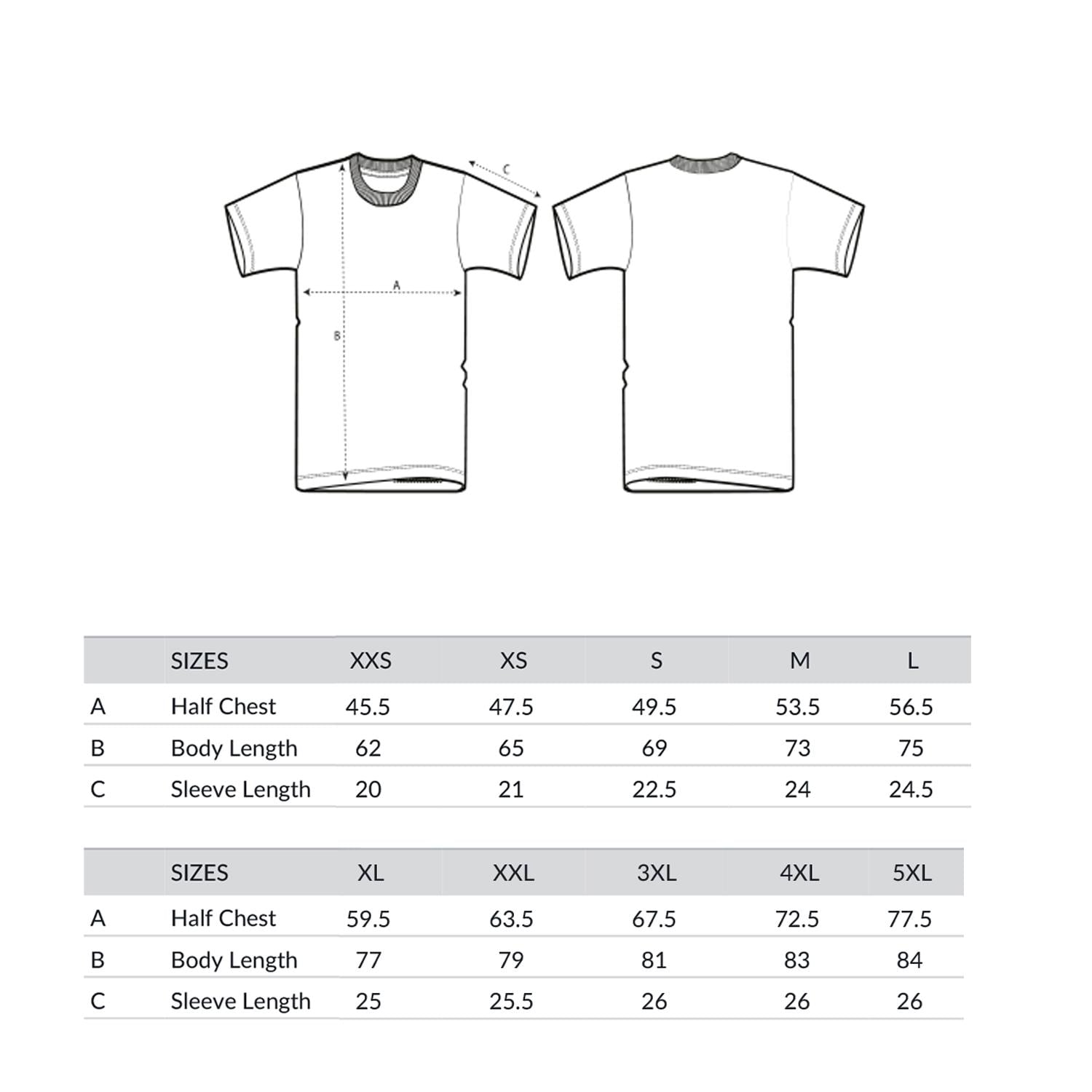 For best result please compare & match size against one of your favourite fitting T Shirts.. Lets ensure the fit & get that 100% buzz!!!